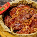 Правда я сделала всё немного по своему: у меня было несколько ребрышек, остальное - мякоть. Мариновала мясо сутки (просто смешала все ингредиенты написанные в рецепте и залила ими мясо). Соус готовила отдельно, т.к. мясо сок не пустило - обжарила перец сладкий, добавила мед, соевый соус, коньяк, мандаринку, барбарис. Получилось очень-очень вкусно!!!!
