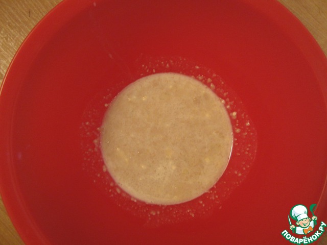 В подогретое молоко добавляю 10 гр. дрожжей, 1 ч. л. сахара и 1 ст. л. муки, перемешиваю... |