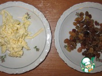 В опару вмешать изюм, смешанный со сливочным маслом. |