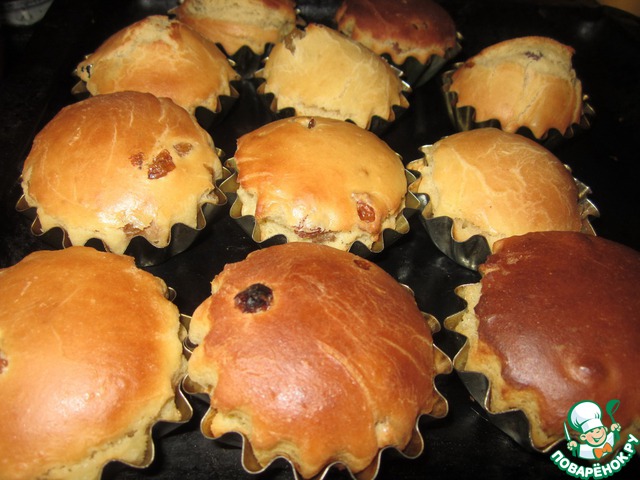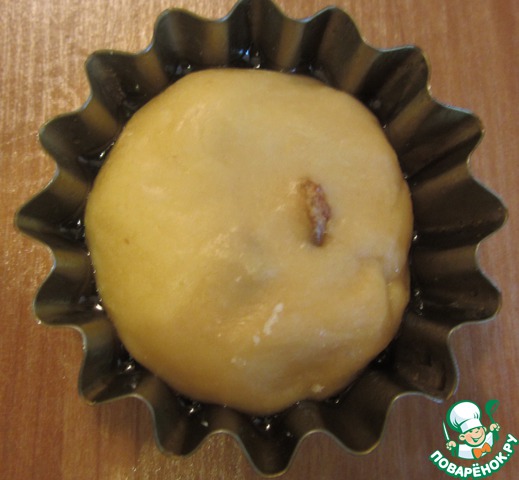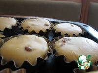 Выложим тесто в формы, заполнив примерно на 1/3, и оставим так еще на полчаса, чтобы тесто снова поднялось. |