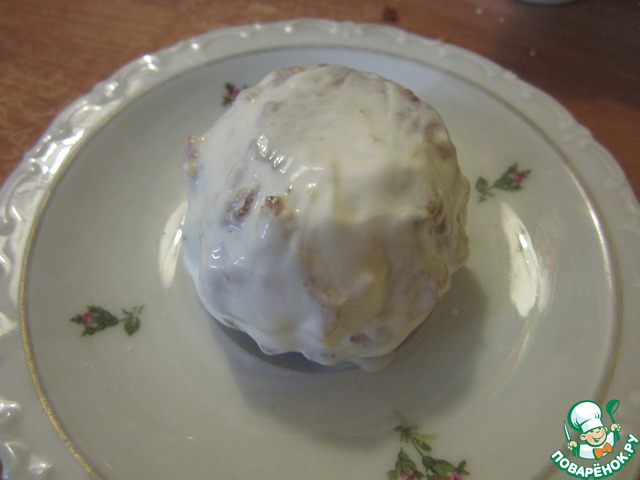 Теперь покрываем ее глазурью... Приготовление глазури: 150 г сахарной пудры, 2 столовых ложки воды или молока и 1 ч. л. лимонного сока.