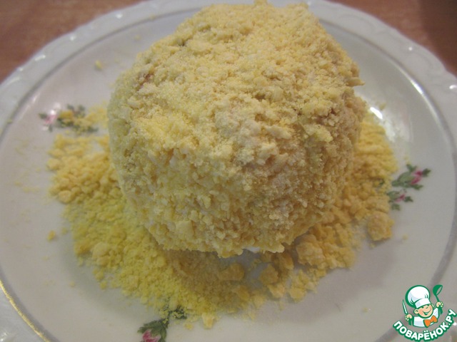 Сверху обсыпать растолченными кукурузными хлопьями (будущее тельце цыпленка). |