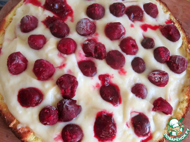 Форму застелить пергаментом, вылить тесто и выпекать при 160 градусах 35-40 минут (готовность проверить деревянной шпажкой). Бисквит полностью остудить.