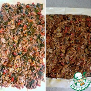Выпекать в духовке при 200-250 градусов 25-30 минут или до зарумянивания верха (ориентируйтесь на свою духовку).
