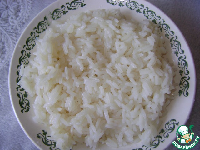 Пока готовится рулет, приготовим рис с овощами. Рис длиннозерный янтарь варить в подсоленной воде на медленном огне 30мин.