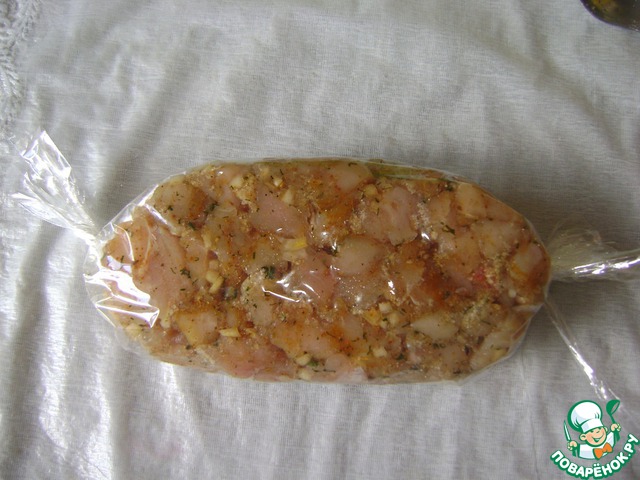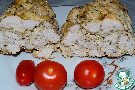 Вынуть из духовки, остудить. Застывший рулет вынимаем из формы, освобождаем от рукава для запекания. Мясо получается очень сочное и ароматное.