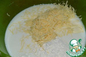 С помощью блендера взбить в однородную массу сыр, молоко, муку и 2 ст. л. сливочного масла. Посолить, перемешать.