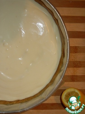 Готовую начинку выливаем на нашу основу и отправляем в разогретую до 180°C духовку на 1 час. По прошествии часа чиз достать, чтобы он постоял минут 15. Пока чиз будет остывать, дабы не терять время, приготовим крем. Взбиваем оставшиеся сливки (100мл) с 2 ст. л. сахара и 2ч. л. лимонного сока. Готовый крем выкладываем на чизкейк и ставим в духовку еще на 20 мин.