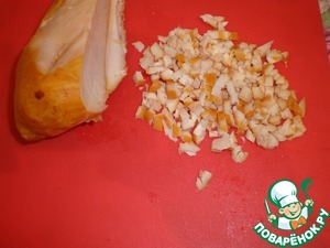 Мелко нарежем куриную грудку.