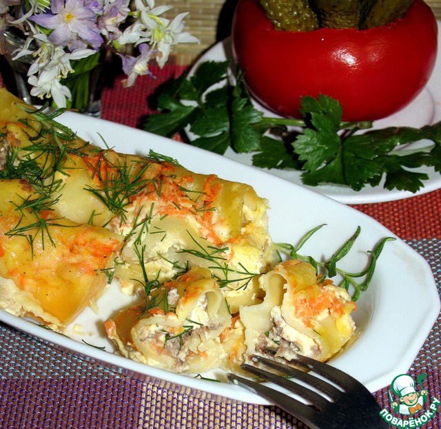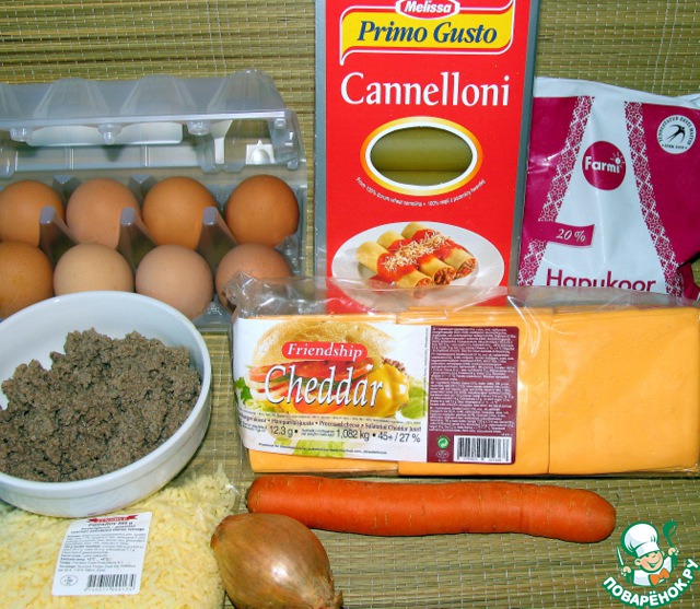 Ингредиенты для «Каннеллони с фаршем и сыром»: