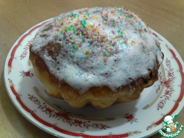 По истечении времени открываем мультиварку, можно для уверенности проткнуть куличик деревянной палочкой. Сразу достаём, кутаем в полотенчико и даём немного остыть.