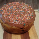 Шоколад просто топим на водяной бане (это обязательно! иначе шоколад пригорит) и наносим на куличик. Сверху можно украсить посыпкой или кокосовой стружкой.