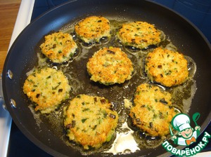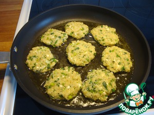 Разогреть масло на сковороде, сформировать восемь небольших биточков.