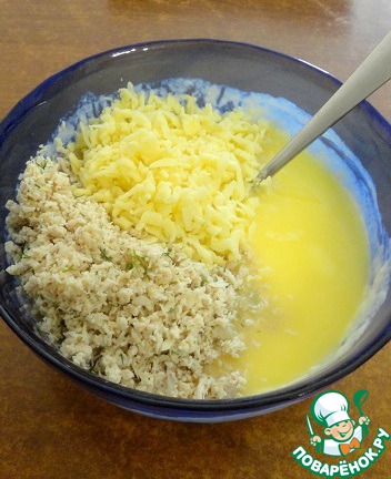 В хорошо перемешанную массу, постепенно, по ложке, добавляем муку.
