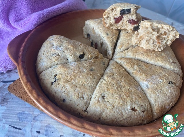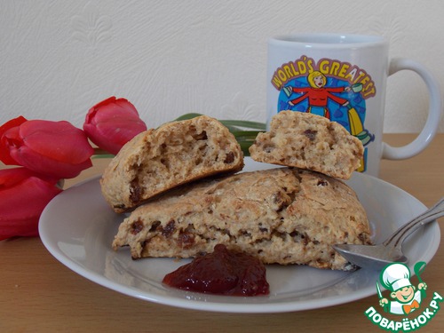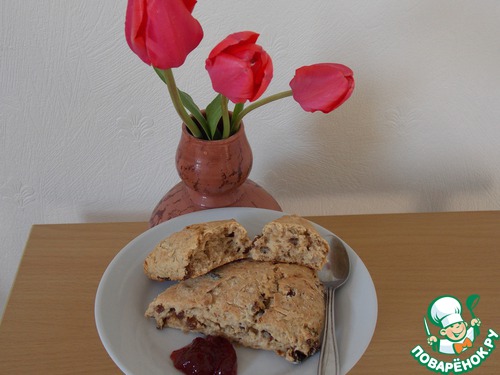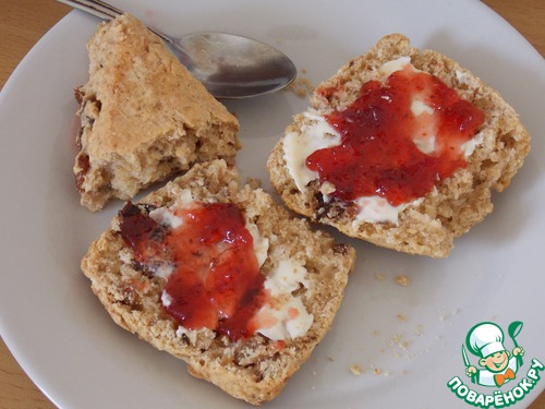 Вариант 2. Если хотите несладкие сконы, уберите из рецепта сахар, а сухофрукты замените на 150-160г тертого сыра.