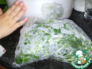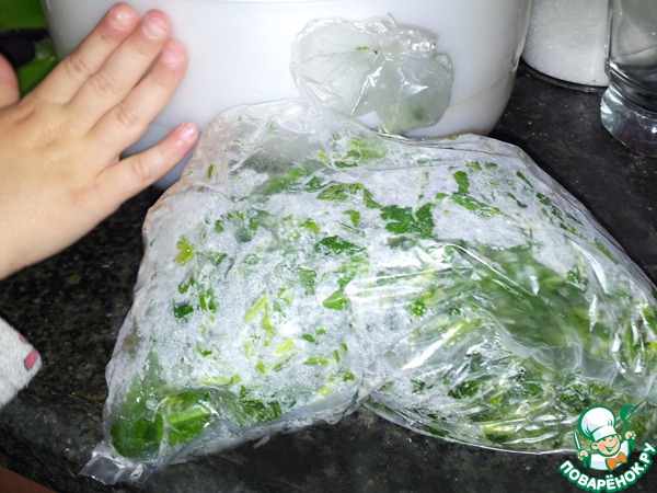 • Я заранее заготавливаю пакетик с мелко нарезанной кинзой и луком в одинаковых пропорциях в морозильнике, когда понадобится, то достаю и размораживаю. Овощи так намного нежнее.