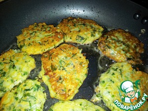 • Ложкой выкладываем на разогретую сковороду, когда появится золотистая корочка, то переворачиваем на другую сторону. Готовим под крышкой.