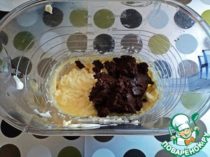 Далее добавляем желтки+ шоколад, взбиваем.