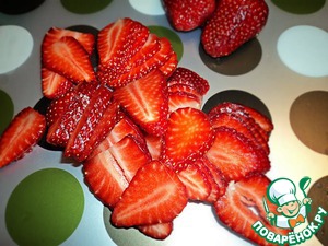 Пока пекутся коржики, готовим клубнику, промываем, обсушиваем, нарезаем! (Стараемся всю не слопать=)))