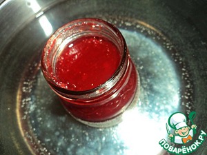 Пока готовые коржи остывают, растопим клубничный джем на водяной бане.