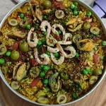 Паэлья — национальное испанское (валенсийское) блюдо из риса, подкрашенного шафраном, с добавлением оливкового масла. Кроме этого в паэлью могут добавляться морепродукты, овощи, курица, колбаса и т. д. Название происходит от латинского слова patella — «сковорода». Традиционно подается по воскресеньям или в день святого Иосифа.