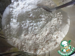В другой миске смешиваем муку, разрыхлитель, соль и сахар.