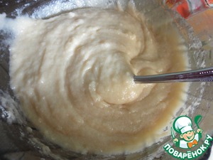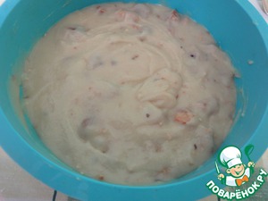 В сухие ингредиенты добавляем жидкие и осторожно перемешиваем.
