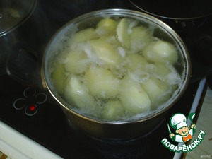 1. Почистить и порезать на пополам крупный картофель. Варить после кипения 5 минут.