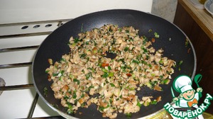 Здесь я использовала именно зеленый лук, поскольку он нежнее репчатого. Меленько порезала и отправила в сковородку с маслом.