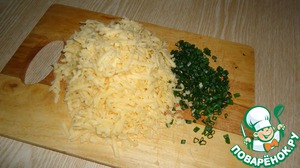 Натрем сыр и мелко нарежем немного зеленого лука.