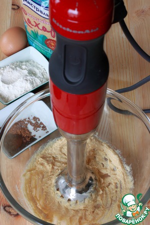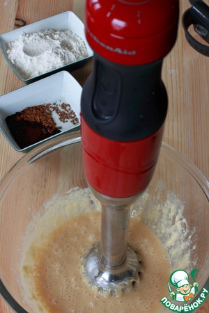 И постепенно влить растворенный в воде ароматизированный кофе. (В случае, если вы будете заменять кофе какао, цедрой, корицей и т. д., воду не исключать.) Понемногу, взбивая, всыпать муку, каждый раз тщательно взбивая до однородности.