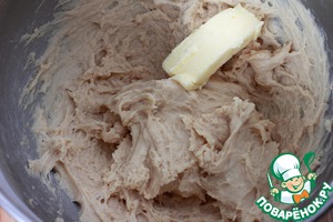 Когда тесто начнет отставать от стенок миски, добавить размягченное сл. масло и снова вымесить. Вот это очень важный момент - добавить масло только после того, как тесто будет хорошо вымешано и полностью высвободится клейковина пшеничного зерна - это одна из причин того, что булки получаются нереально мягкими, пышными и воздушными. После вымешивания теста вместе с маслом получится немного липкое, но очень нежное, мягкое тесто.