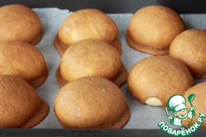 Поставьте противень в разогретую до 180 С духовку и выпекайте булочки 15 минут. Масляное тесто равномерно стечет и покроет булочки хрустящей и ароматной корочкой.