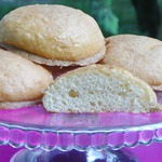 2. Очень важно придерживаться именно данных пропорций и использовать мелкий сахар, поскольку, когда я пекла булочки во второй раз, то положила все ингредиенты на глаз и взяла крупный сахар. Результат очень сильно отличался от первоначального - тесто осталось лежать шапочкой на булочках, а не растеклось красиво по всей поверхности. Кроме того, сахар до конца не растворился, загадочно поблескивал всеми своими гранями и хрустел на зубах. Поэтому не поленитесь, взвесьте все продукты и, при необходимости, измельчите сахар на кофемолке. -