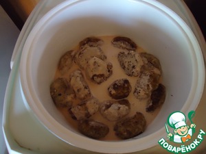 Выкладываем обжаренные голубчики в мультиварку и заливаем соусом. Выставляем программу "тушение", тушим 40 минут.