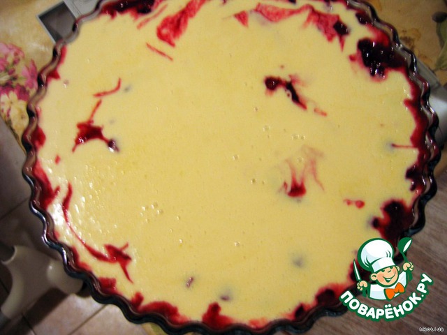 5. положить ягоды в круглое блюдо (смазанное маслом) с высокими бортиками. Залить тестом