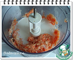 Приготовить фарш из мяса кролика, морковки и лука. (при помощи блендера или мясорубки).