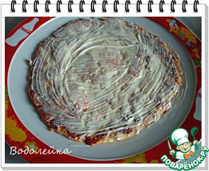 Блинчик выложите на тарелку. Смазать сметаной (или майонезом)... -