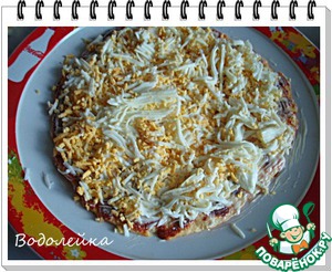 Сверху натереть яйца (у меня на один блинчик уходило 1.5 яйца). Но это количество можно регулировать (потереть больше или меньше).