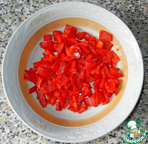 Сладкий перец очистить и нарезать кубиком. У меня замороженный.