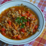 [+5]Суп отпадный! Кстати, первый раз пробовала чечевицу (зеленую не нашла, красную положила) - жутко хотелось разнообразия))