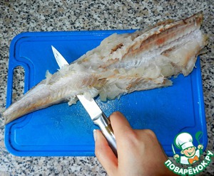 Почистить и помыть рыбу. У меня были 2 большие тушки. Вес рыбы в игредиентах дан без учёта костей, тоесть только филе, чтобы легче было сориентироваться. У нас филе не очень хорошего качества.