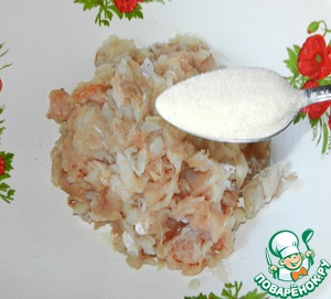 Далее необходимо измельчить его ножом (не очень мелко) или перебить блендером.