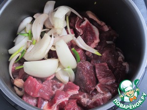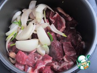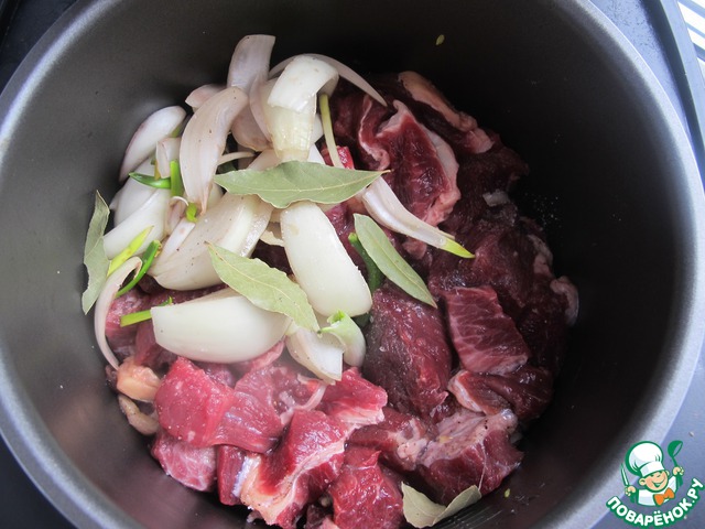 Все хорошо перемешать. Залить 1 литром воды. Зарыть крышку. Режим "тушение " на 4 часа. |