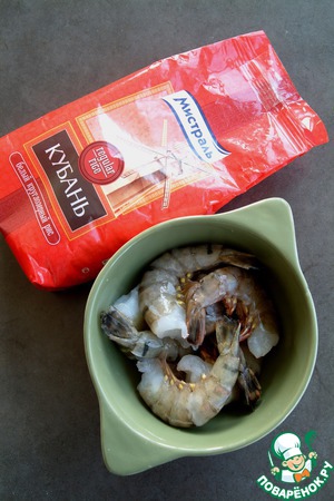 • Креветки разморозить, очистить от панциря, удалить кишку.