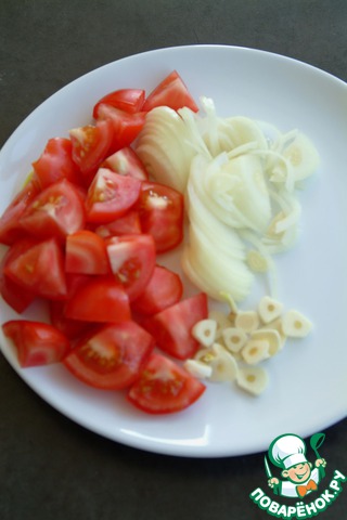 • Нарезать лук, чеснок и томаты крупно. Обжарить на оливковом масле лук, затем чеснок, добавить томаты. Через пару минут томатная кожица отделится от помидор и ее легко можно удалить из сковороды. Затем добавить винный уксус, соль, сахар, перец ч. м., кориандр, сухой базилик. Если масса получится слишком густой, добавить немного воды. Попробовать, если необходимо, отрегулируйте вкус под себя.