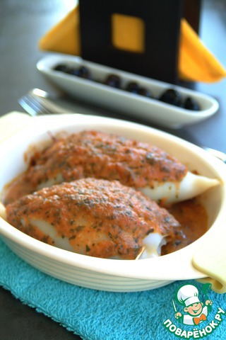 Кальмары под базиликово-томатным соусом Дж. Оливера. Очень мне понравился этот рецепт. Надеюсь, вам будет так же вкусно.
