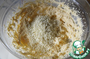 • Добавить последовательно белый шоколад, натертый на мелкой терке, ваниль и кокосовую стружку, оставив немного кокоса для украшения. Хорошо перемешать тесто.