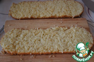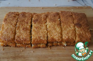 Разрезать на небольшие пирожные любой формы. У меня получилось 8 пирожных.