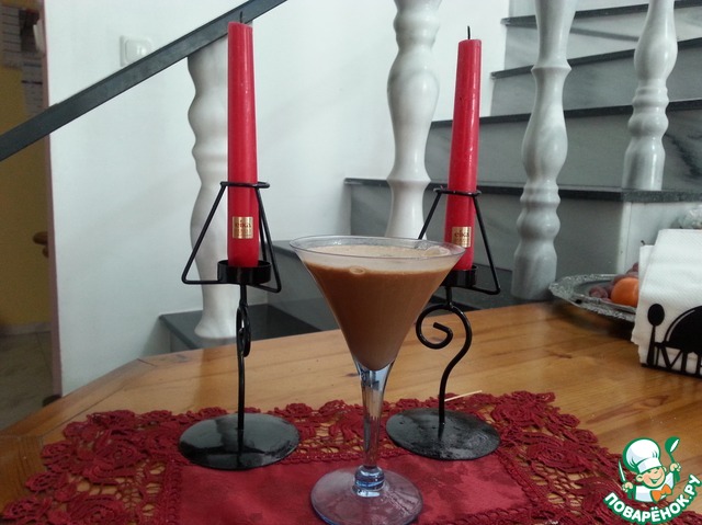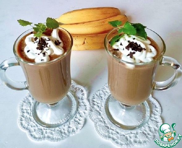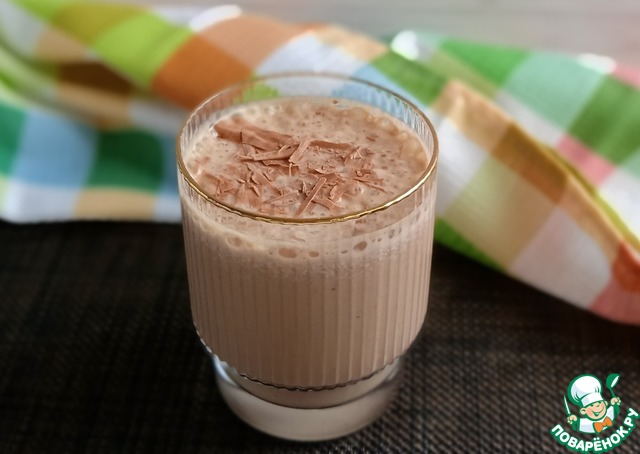 Все ингредиенты взбить блендером до однородной массы, верх украсить взбитыми сливками или тертым шоколадом.